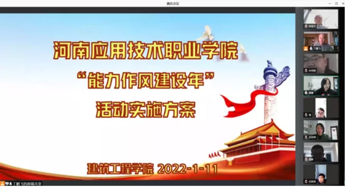 为深入学习贯彻党的十九届六中全会精神,贯彻落实习近平总书记视察河南重要讲话重要指示,切实把省第十一次党代会部署落实落细,根据学校工作安排,2022年1月11日,永利集团88304官网集团党总支组织全体教职员工以腾讯会议的形式召开了线上“能力作风建设年”活动动员部署会,会议由学院党总支书记马春燕主持。