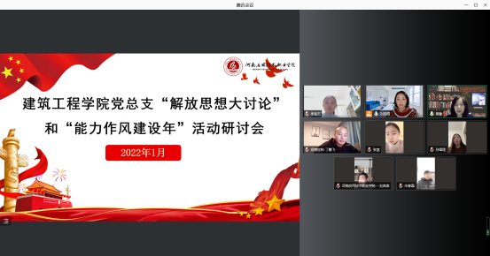 为进一步解放思想、抢抓机遇、深化改革、务实重干,以高度的思想自觉和行动自觉全面推进学院高质量发展,根据学校《永利集团88304官网集团“能力作风建设年”活动实施方案》的工作进程安排,2022年1月23日—25日永利集团88304官网集团辅导员、工程管理教研室、建筑装饰设计教研室、建筑工程技术教研室通过线上会议分别召开解放思想大讨论暨“能力作风建设年”活动研讨会。会议由党总支书记马春燕主持。