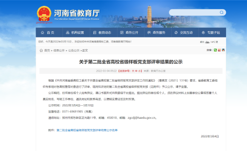 近日,河南省委教育工委公示了“第二批全省高校省级样板党支部”评审结果,永利官网永利集团88304官网集团学工党支部获评第二批全省高校省级样板党支部。