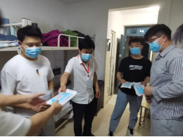 2022年5月24日,永利集团88304官网集团学工党支部党员教师、专升本班级辅导员对隔离在8#楼、6#楼宿舍的专升本学生进行防疫物资的发放工作,防疫物资包括口罩、消毒水、消毒凝胶,整个活动严格遵守疫情防控的要求。