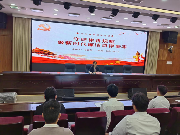 会议开始,马春燕强调,作为一名党员要增强入党的光荣感和责任感,坚定对党的信念,始终以党员的标准规范严格要求自己,更要以身作则,率先垂范,起先锋模范作用。接下来,马春燕为大家讲授“守纪律讲规矩,做新时代廉洁自律表率”专题党课,她表示身为时代接班人,要学会约束自己,规范自己的行为,对自己的所言所行负责,不仅要办好事,更要做好人,要学法遵法守法,不贪污,不腐败。