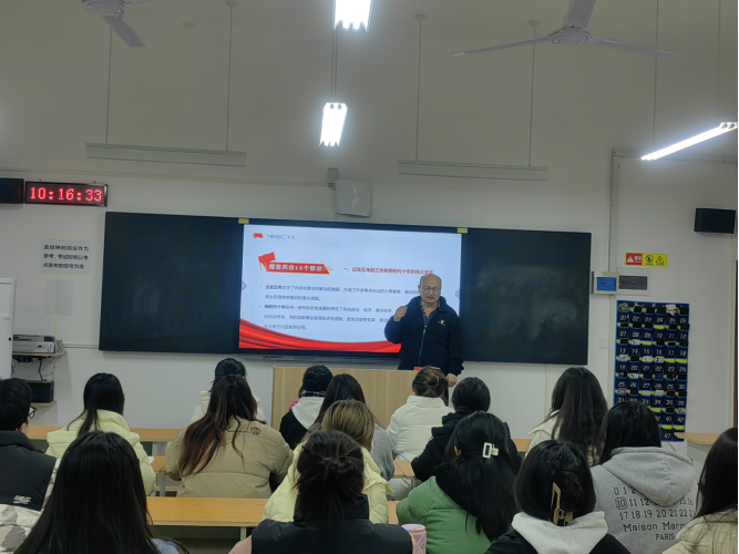 回望百年,青春向党。一百年接续奋斗、凯歌前行,一代又一代青年积极投身党领导的革命、建设、改革的伟大事业,用青春之我创造青春之中国、青春之民族,让青春在奉献中绽放绚丽之花。2023年3月16日,永利集团88304官网集团教工党支部书记张虎在开封校区C106为学生讲授以“了解党的二十大”为主题的专题党课。