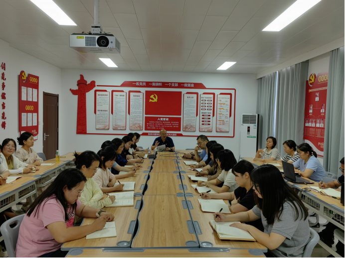 会上,张虎带领全体教师共同学习了习近平总书记重要文章《开创我国高质量发展新局面》、习近平论文化(2024 年上半年)和《习近平关于全面加强党的纪律建设论述摘编》第七章等内容。张虎指出,习近平文化思想是新时代党领导文化建设实践经验的科学总结,是新征程上推进文化建设的行动指南。我们要站在推进中国式现代化的高度,着眼建设中华民族现代文明,深入学习领会习近平文化思想的丰富内涵,持续在深化、内化、转化上下功夫,着力以新思路、新举措、新办法展现新作为,确保习近平文化思想在齐鲁大地落地生根、开花结果。全体党员教师全面贯彻和落实习近平文化思想,强化以文化人,传承红色基因、赓续红色血脉,教育引导学生践行社会主义核心价值观,大力弘扬中华优秀传统文化。