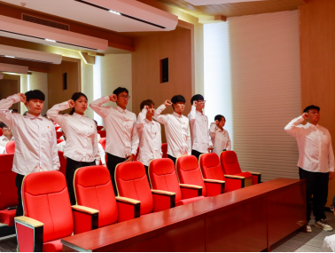 会议第四项:宣誓礼由团员代表郭松涛领誓