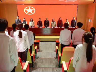 全体成员起立齐唱团歌,歌声嘹亮,用声音传达青年壮志,做四有青年,为中华千秋伟业而奋斗。