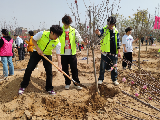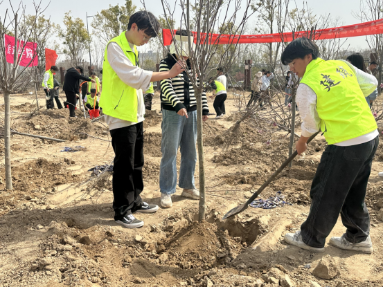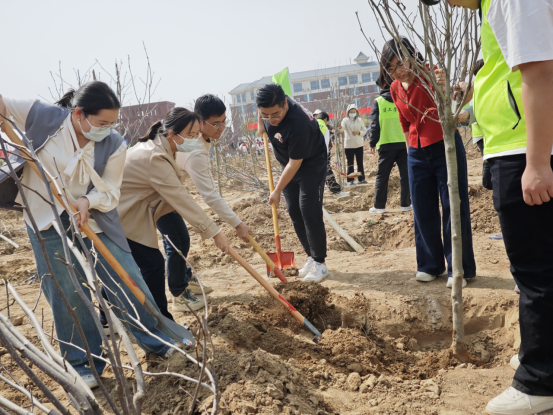 活动现场,在党总支书记张虎简要介绍活动意义与流程后,大家迅速投入到植树工作中。党员教师们和入党积极分子们热情高涨,分工明确,密切协作。大家手持工具,干劲十足,党员教师们充分发挥模范带头作用,熟练地挥锹铲土、扶苗培土、提水浇灌,每一个环节都认真细致、一丝不苟。在大家齐心协力的努力下,一棵棵树苗扎根在校园的土地上,在微风中摇曳生姿,展现出蓬勃的生命力,形成了一片充满生机的“党员先锋林”。