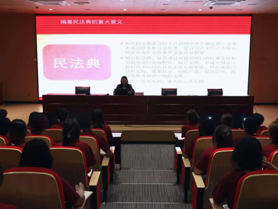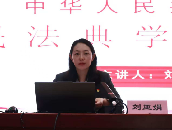 刘亚娟主要从四个方面讲解了民法典的相关知识。刘亚娟指出,民法典编纂是党的十八届四中全会确定的重大政治任务和立法任务,是党中央推进法治建设的关键部署。编纂民法典对于坚持和完善中国特色社会主义制度、推进全面依法治国、完善社会主义基本经济制度、增进人民福祉等方面都具有不可替代的重要意义。它不仅彰显了中国特色社会主义法律制度成果和制度自信,更为人类法治文明进步贡献中国智慧。