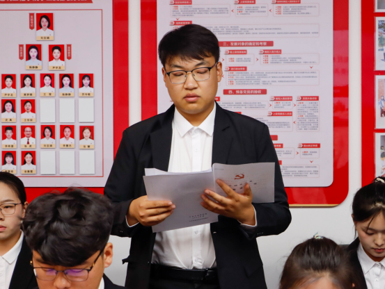 李相成等15名发展对象依次宣读入党志愿书,从思想、学习、工作和生活等方面汇报个人情况,阐述对党的认识、入党动机、本人履历及在校表现等。他们总结了考察期的成长与收获,承诺若成为预备党员,将以党员标准严格要求自己,发挥先锋模范作用,为班集体建设贡献力量。