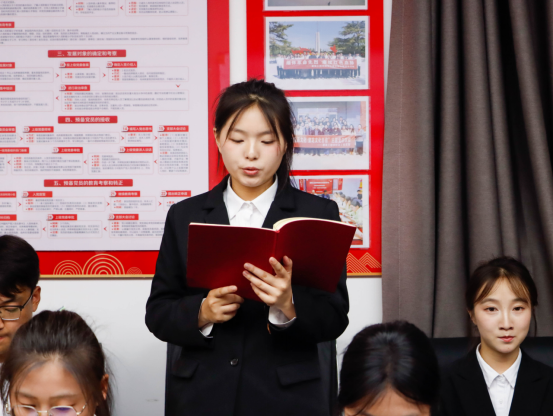 15名发展对象依次表决心,称将以此次大会为新起点,牢记党的嘱托,努力学习,勤奋工作,提高自身素质,践行入党誓词,为党和人民的事业贡献力量。