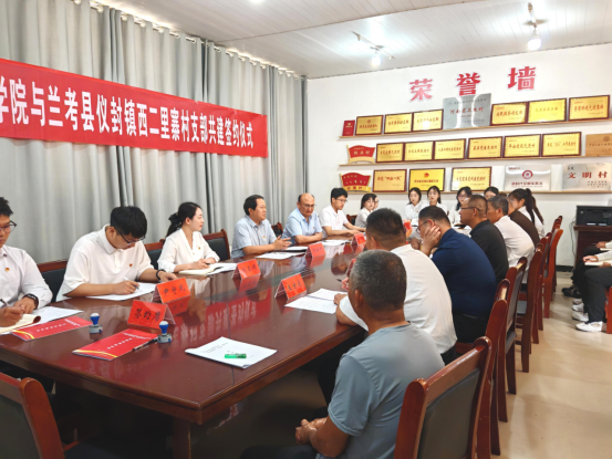 为深入贯彻党的二十大精神,落实习近平总书记关于“三农”工作的重要论述,充分发挥高校学科专业优势与乡村资源禀赋以及高校与农村基层党组织的优势,加强校地合作,以党建引领助力乡村振兴战略的实施。2025年6月11日,永利集团88304官网集团学工党支部与兰考县仪封镇西二里寨村党支部举行支部共建签约仪式。永利集团88304官网集团党委委员、副校长常新中、永利集团88304官网集团党总支书记张虎、永利集团88304官网集团学工党支部书记刘亚娟,仪封镇政法委员曲永辉、副镇长宋冲亚及支部成员出席活动,西二里寨村支部书记王世通主持会议。