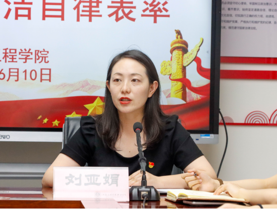 随后,支部书记刘亚娟为党员们上了一堂精彩的党课。刘亚娟以“守纪律讲规矩,做新时代廉洁自律表率”为主题,从党的纪律建设的历史脉络讲起,深入剖析了党的纪律规矩体系,包括政治纪律、组织纪律、廉洁纪律、群众纪律、工作纪律和生活纪律等各个方面。结合当下社会热点和行业实际,她列举了建筑领域中一些因违规违纪而导致的不良事件,告诫毕业生党员要坚守职业道德,杜绝利益输送、违规操作等行为。同时,刘亚娟还鼓励党员们要在工作中积极发挥先锋模范作用,以高标准严格要求自己,在新时代的浪潮中展现党员的担当与风采。