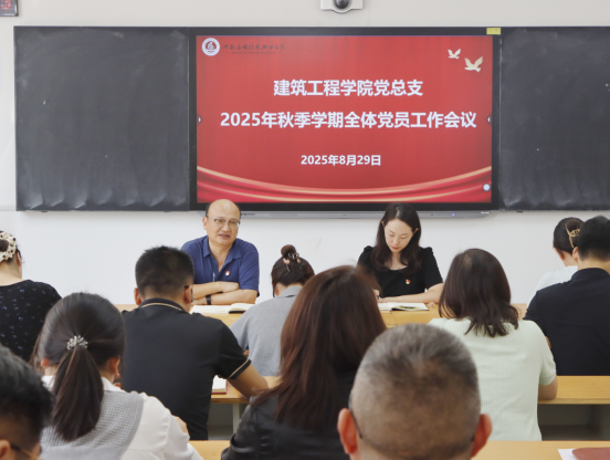 为深入学习贯彻习近平新时代中国特色社会主义思想,持续深化党的创新理论武装,凝聚新学期真抓实干的工作作风。2025年8月29日上午,学院召开全体党员大会。此次会议由党总支书记张虎主持,党总支副书记及全体党员教师参加会议。