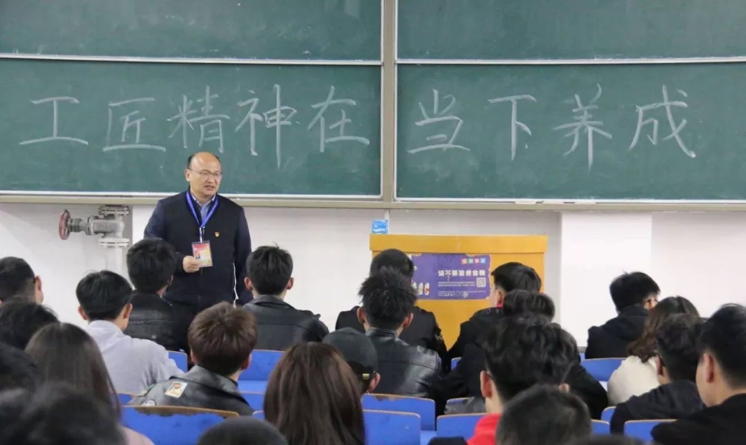 讲座上,成鹏飞教授提出的工匠精神的灵魂要具有浓厚的家国情怀、顽强的意志品质、永恒的质量意识、自觉的规则意识、和谐的团结精神、不懈的创新追求的观点,系统科学,深入浅出,讲解有理有据,鞭辟入里,让学生们受益颇深,受到学校领导和学生们的一致好评!