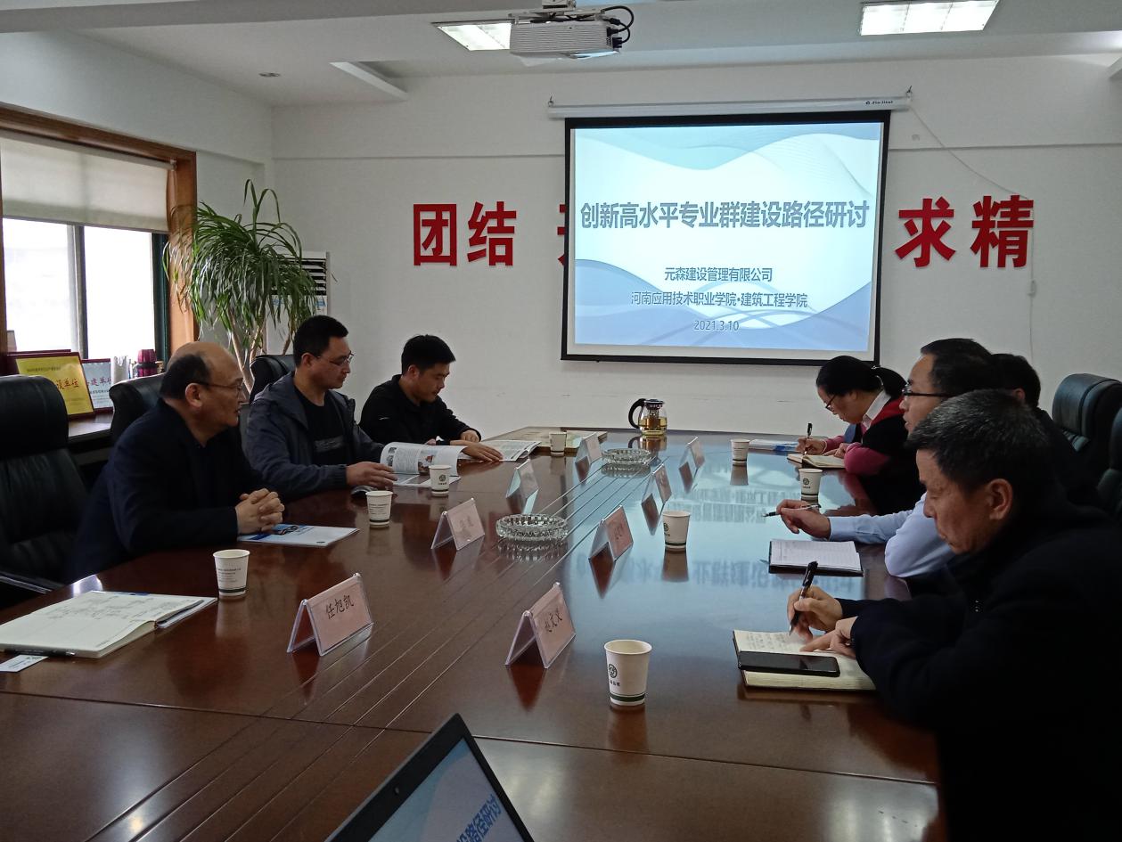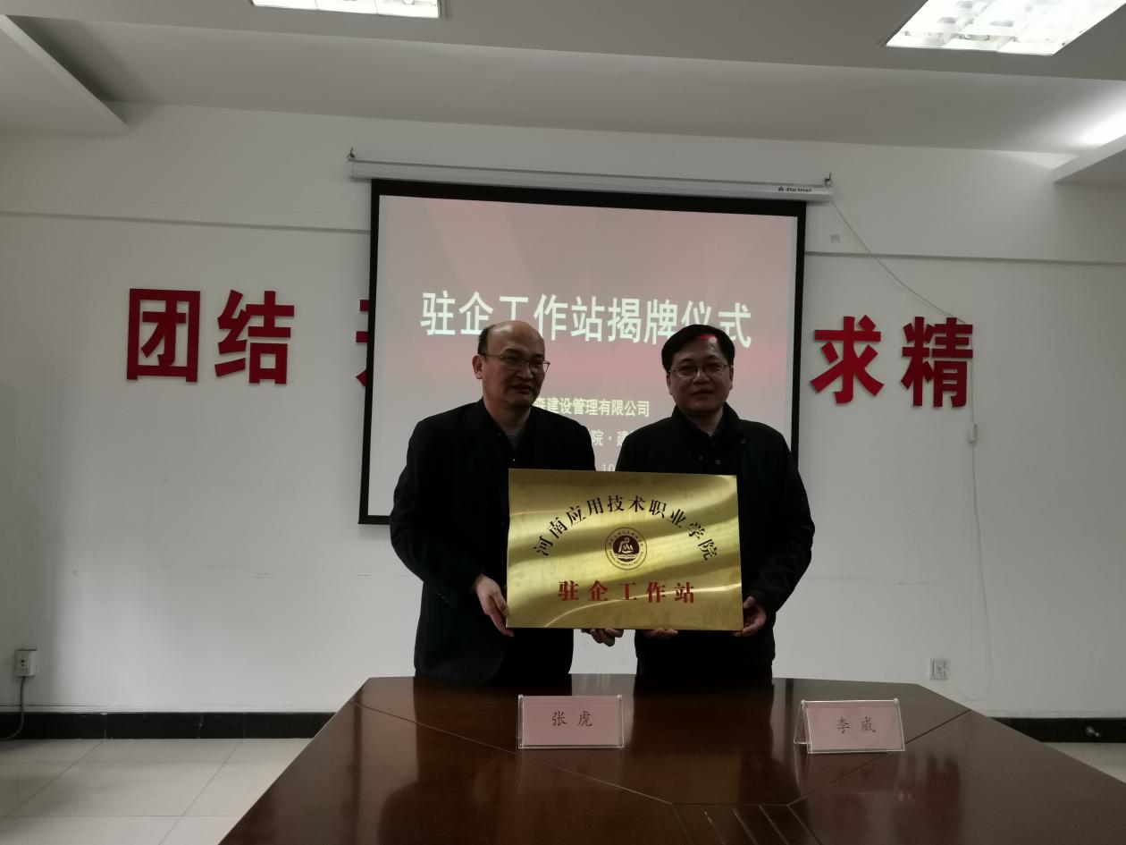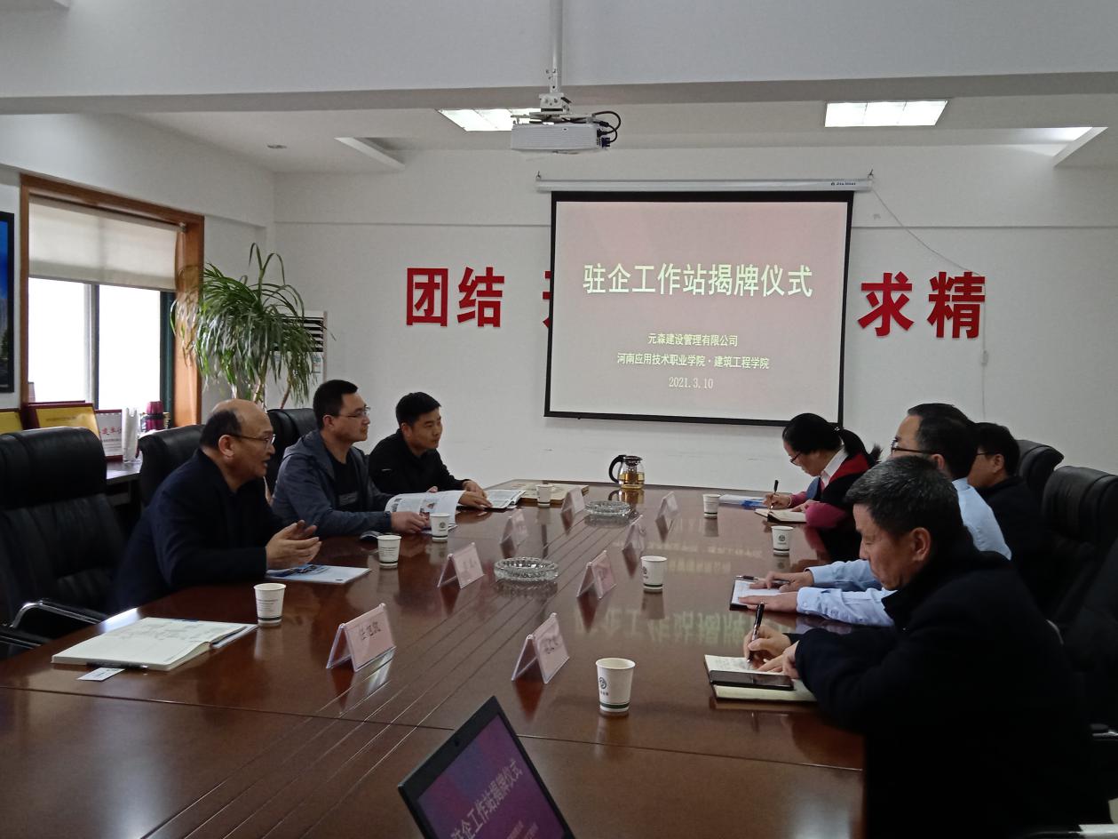 为进一步深化校企合作,加强双师教师培养、推进专业群建设及“三教”改革,培养合格专业技能人才。永利集团88304官网集团院长张虎、办公室主任樊磊、教务办主任任旭凯、就业专员宋春磊等一行4人,在3月10日上午来到河南元森建设管理有限公司,出席驻企工作站签约及挂牌仪式,并参加深化校企合作产教融合研讨会。河南元森建设管理有限公司董事长李威、副总经理范建伟、赵文义、人事部经理李燕飞等企业领导出席。