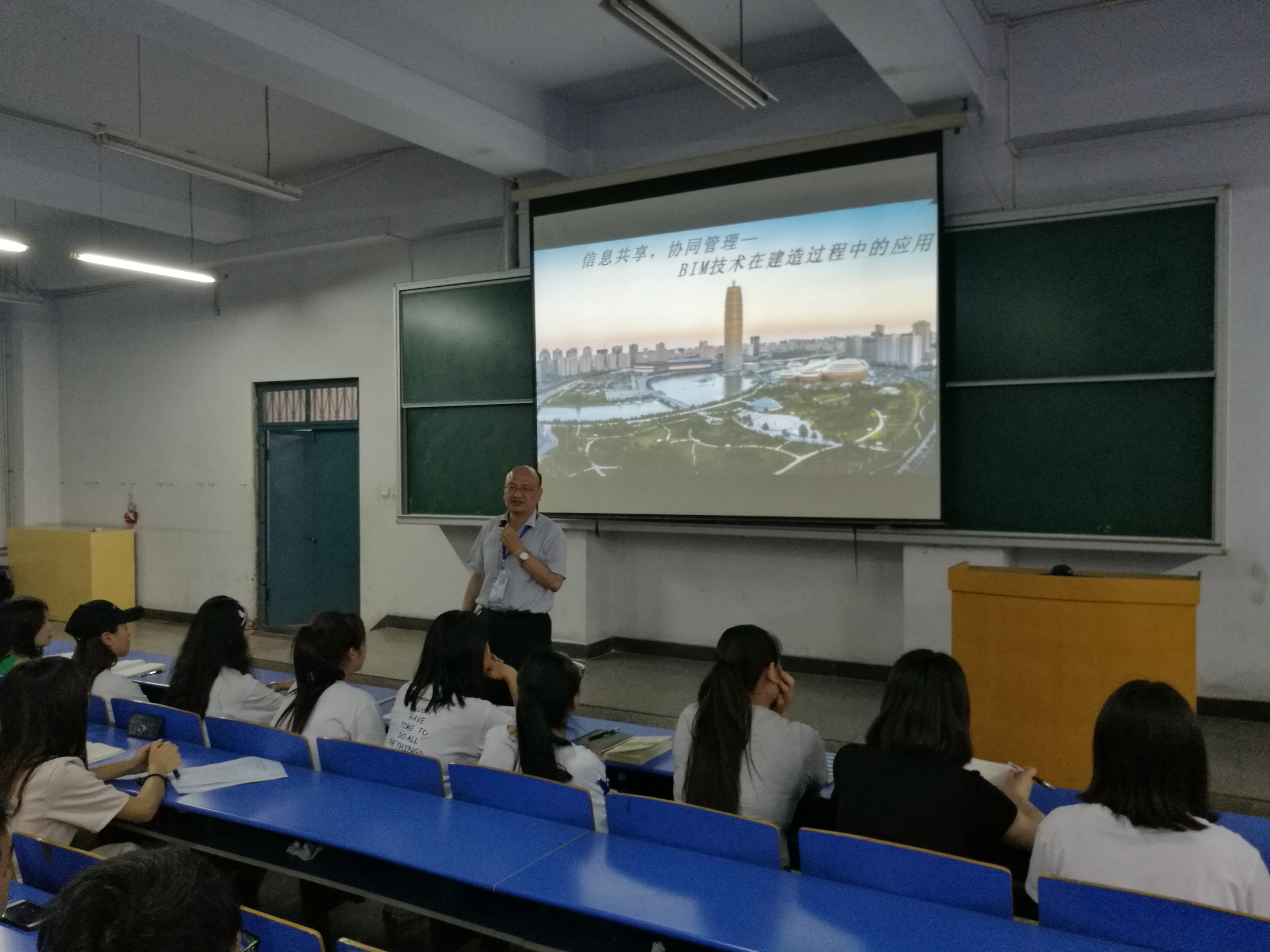 2017.5.16,永利集团88304官网集团组织造价、监理、建工以及校企合作班16级学生在学术报告厅听河南博之幕软件科技有限公司BIM技术顾问、经理张东升先生,做题为《信息共享,协同管理——BIM技术在建造过程中的应用》专题讲座,讲座由永利集团88304官网集团张虎院长主持。