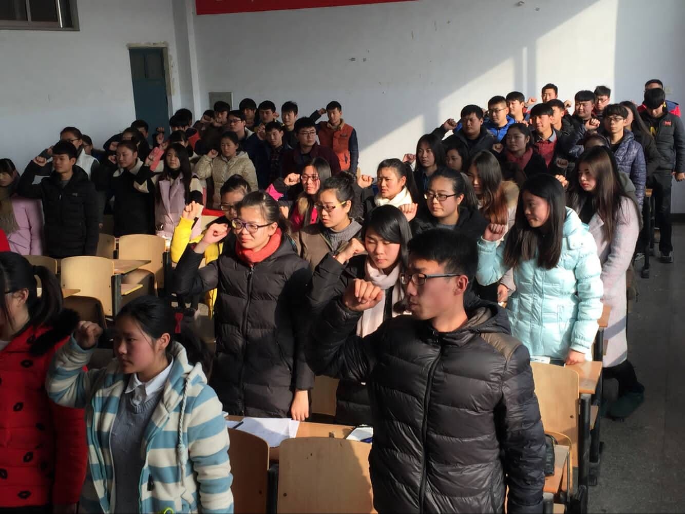 同学们在教室里庄重宣誓“我将自觉遵守考试纪律,公平参与考试竞争;用我的认真努力,积极复习迎考;用我的自觉自律,维护考场纪律;用我的自尊自爱,参与公平竞争;用我的诚信人格,倡导优良考风。自警自律??自尊自爱??诚信考试??拒绝作弊”。本次诚信考试动员大会圆满结束,弘扬了传统“诚实守信”的民族精神,进一步强化大学生的诚信意识,发扬我系诚信的优良传统美德,树立我系道德之新风,立诚信之根本,创建工之辉煌,创优良学风是我们大学生所必需担当的责任,也是我们建工系任务之根本。