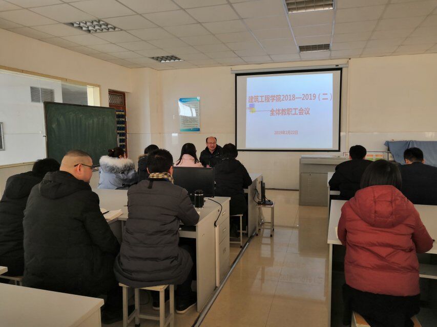 2019年2月22日上午九点在E513召开全体教职工会议,张虎院长和马春燕书记分别做相应的工作部署,张虎院长针对国家职业教育改革实施方案进行详细讲解,并针对新学期开学的工作做出详细的安排。马春燕书记针对五关爱小组话题提出明确的要求,一定要充分落实起来,关爱到“情” 关爱到“位”,热情服务,以饱满的工作热情和责任心投入到关爱工作当中。用体贴入微的关怀,帮助学生解决实际困难;另外马春燕书记对党建工作及辅导员的调整工作做出具体的阐述。