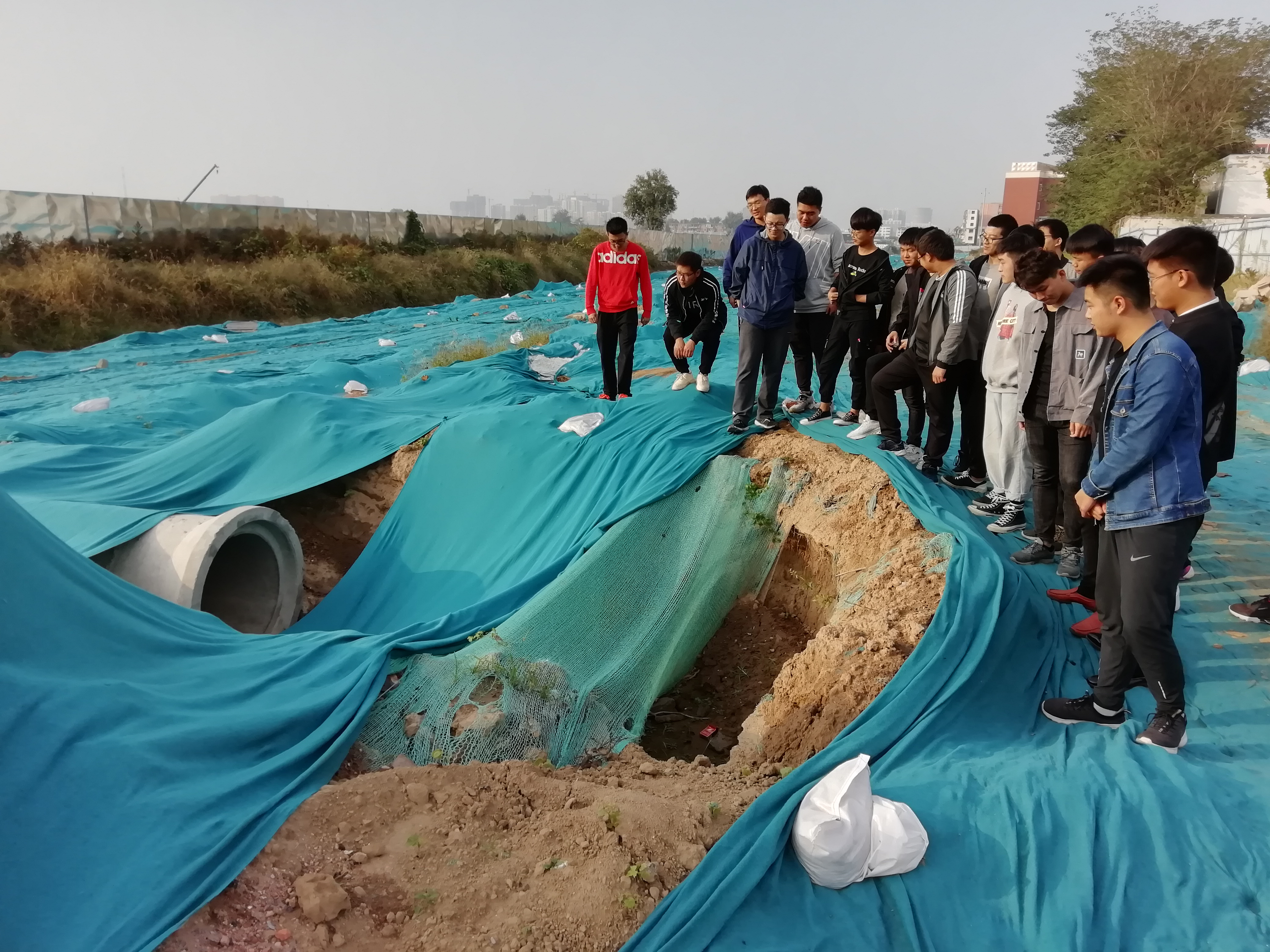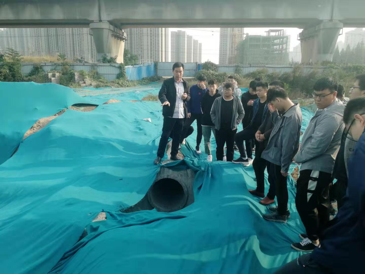 为了拓宽学生的知识面,提高大家的学习兴趣,根据学院教学工作的安排,2019年10月18日下午,永利集团88304官网集团建工技术教研室刘高喜老师带领建工1801班24名同学,来到学校西边市政道路施工工地开展现场教学。