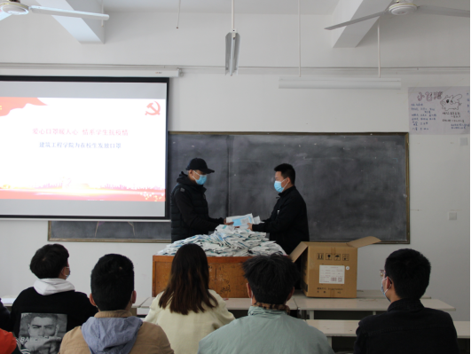 发放现场,我院严格按照疫情防控要求,不聚集不扎堆,由班长统一领取口罩,之后依次交给学生,将学院的爱心、关心传至每位同学手中。同时,老师叮嘱学生在疫情封校期间,大家合理安排在校生活与学习,遵守学校疫情防控相关制度,勤洗手、多通风,科学佩戴口罩,师生信任筑牢校园安全防线。