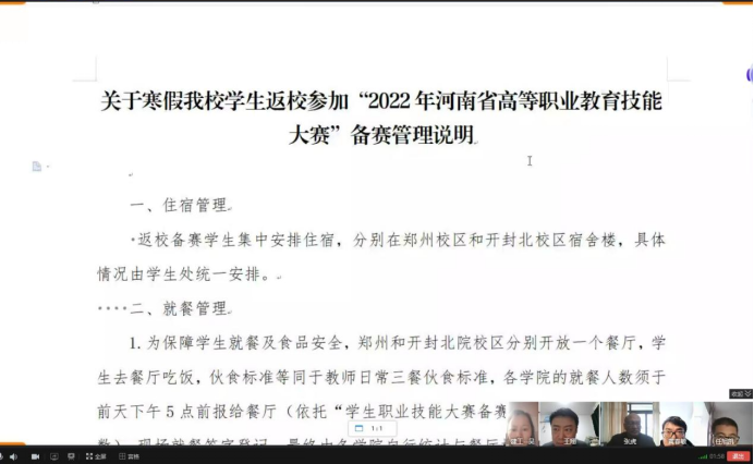 为积极备战河南省高等职业教育技能大赛,提振备战信心,争取再创佳绩。2023年2月2日上午,永利集团88304官网集团召开关于寒假永利官网学生返校参加“河南省高等职业教育技能大赛”备赛会议,院长张虎、副院长任旭凯及各项目负责人参加了会议。