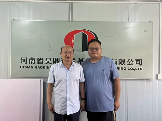 张虎院长来到本次教师暑期实践所在的建筑工地——河南省中医院高新区院区建设项目,与企业方代表河南省中医院高新区院区建设项目基坑工程项目经理邰书朝进行亲切座谈。邰经理分别介绍了公司项目开展情况、教师实践情况、人才需求情况等,对我院实践教师的表现给予了高度评价,指出企业在用工方面的迫切需求,希望在现有合作基础上进一步加大在科研创新、项目共建等方面的合作深度,达到教学相长的目的。
