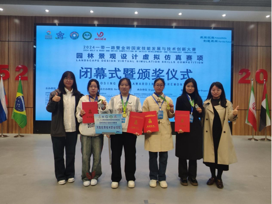 2024年11月9日,2024一带一路暨金砖国家技能发展与技术创新大赛园林景观设计虚拟仿真赛项全国赛决赛于河南农业职业学院圆满落幕。我院教师田然、闫相向、李雪萌、胡敏贤指导的风景园林设计专业学生表现卓越,其中陈晓艺、王舒宇组成的代表队荣获全国一等奖,娄智豪、索艳汝组成的代表队荣获全国二等奖。