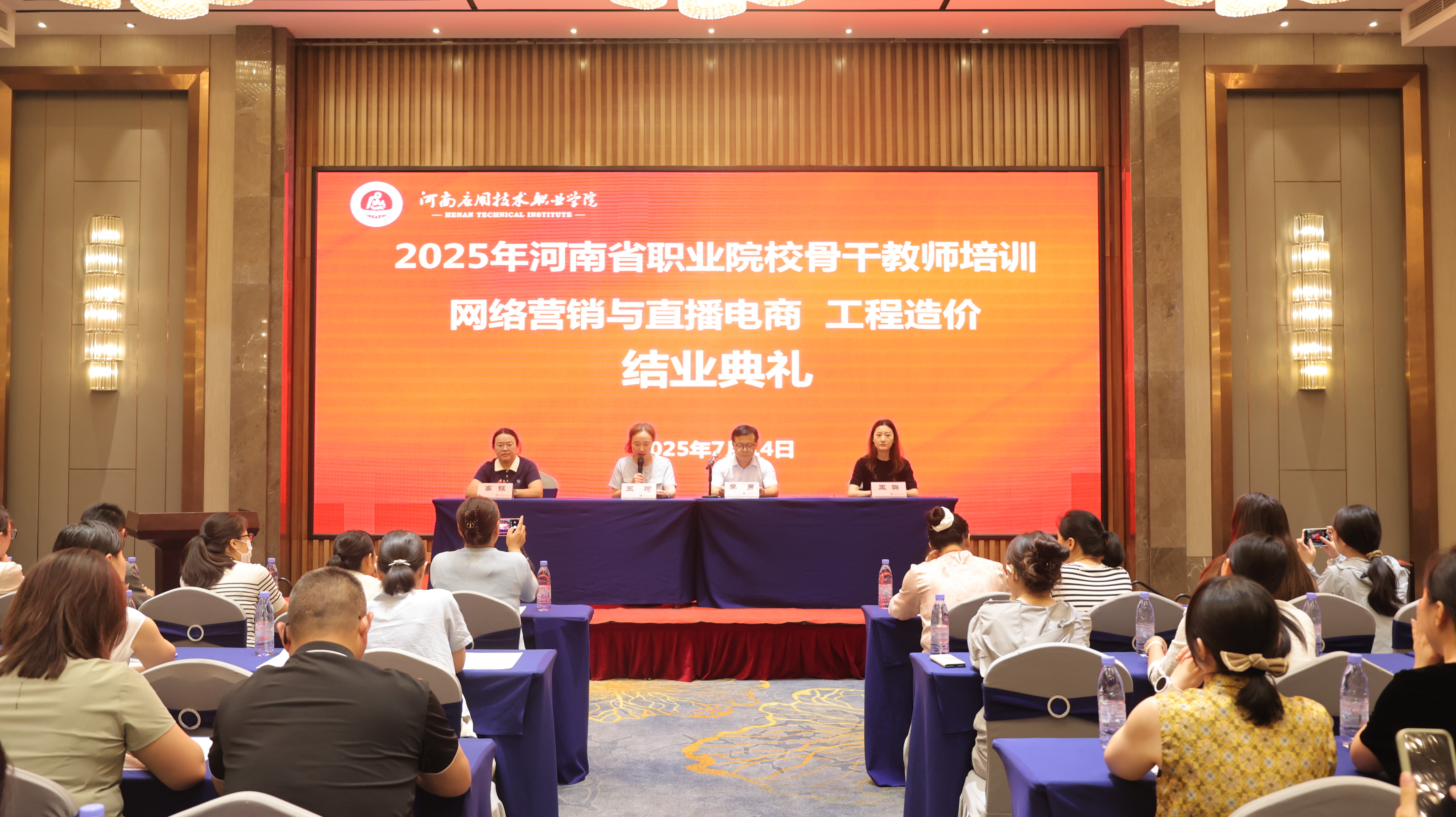 2025年7月14日下午,2025年河南省职业院校骨干教师(网络营销与直播电商、工程造价)省级培训结业典礼在郑州隆重举行。永利集团88304官网集团院长李勇、商学院副院长王珂出席仪式,仪式由王珂主持。