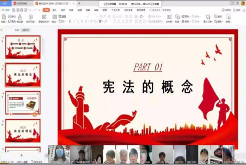 在全学院范围开展“学习宣传贯彻党的二十大精神,自觉维护宪法权威”“学习宪法精神”“学宪法、讲宪法”“弘扬法治精神,维护宪法权威”等主题班会,辅导员通过视频、讲解PPT等形式来向大家讲解宪法的由来、宪法的地位以及宪法的核心内容等,向同学们阐释了“学宪法,讲宪法”对大学生砥砺前行、立志成才的重要意义,并呼吁同学们认真学习宪法,大力弘扬社会主义法治精神,努力培养社会主义法治文化,让宪法信仰根植于每个人内心深处。