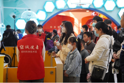 早上7点,志愿者们准时在校门口集合,身穿绿马甲有序前往郑州科技馆。在抵达后,工作人员对大家进行了简单的培训,并根据馆内的需求进行分组,随后便共同投入到各自的工作岗位中去。有些同学在科技馆门口辅助检票,帮助安保维持进馆秩序,防止发生拥挤;有些同学在负一楼4D影院辅助检票,分发和清洗眼镜……在为期两天的志愿服务活动过后,志愿者们与科技馆导员进行了合影留念,脸上洋溢着开心的笑容。