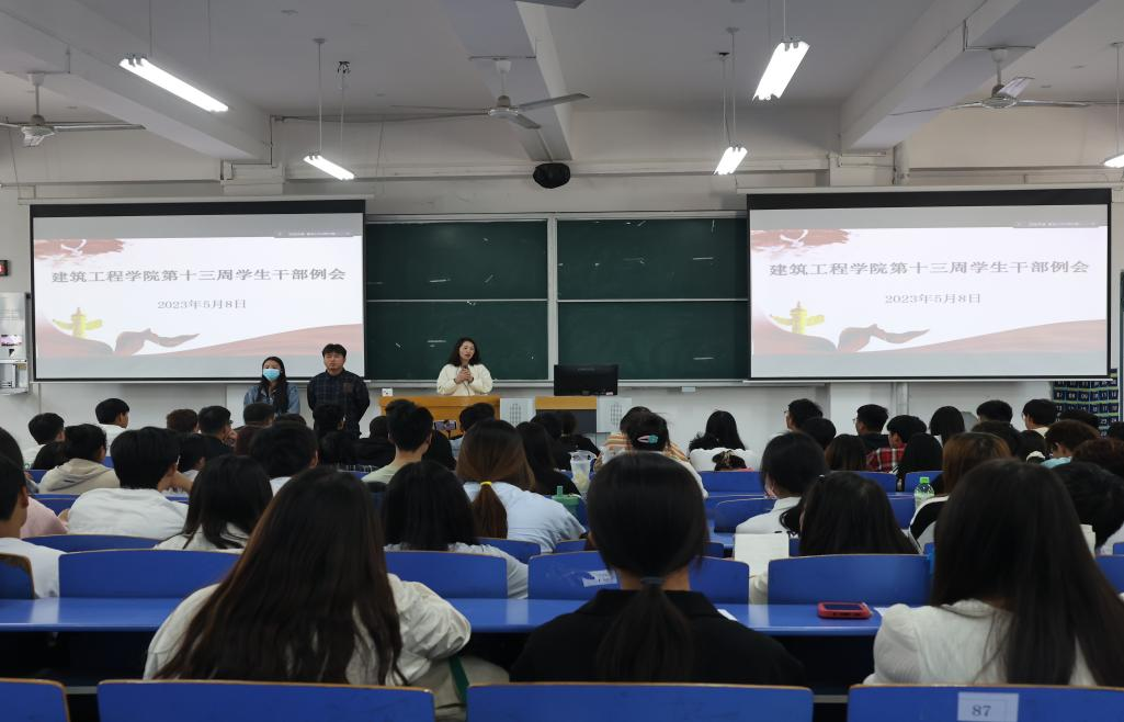 为提高学生干部积极性、主动性以及学生干部的综合素质,为学生提供更好的服务。2023年5月8日中午,永利集团88304官网集团在郑州校区B201教室召开了第十三周学生干部例会(开封校区以视频形式在C101教室参加会议)。会议由永利集团88304官网集团辅导员李慧杰主持,党总支副书记刘亚娟,辅导员李政、宋春磊、李玉飞、闫相向以及21级、22级学生会全体成员、入党积极分子、各班班长、团支书和生活委员参加。