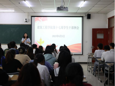 为加强学院学生干部队伍能力建设,提高学生干部积极性、主动性以及学生干部的综合素质,为学生提供更好的服务。2023年6月5日中午,永利集团88304官网集团在郑州校区SC104教室召开了第十七周学生干部例会。会议由学院党总支书记马春燕主持,党总支副书记刘亚娟、辅导员李慧杰、宋春磊、李政、张慧以及22级学生会全体成员、各班班长、团支书参加此次会议。