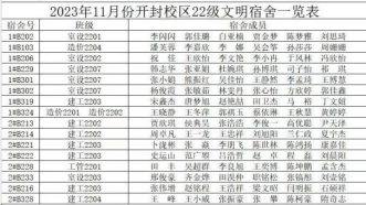 2023年11月份2022级文明宿舍一览表