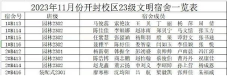 2023年11月份2023级文明宿舍一览表