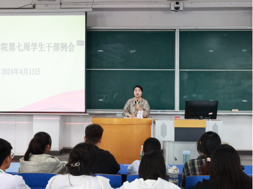 为进一步加强学生干部的自我建设,增强责任意识,增进各部门之间的交流,提高工作水平,永利集团88304官网集团于2024年4月13日在郑州校区B301教室组织召开第七周学生干部例会。会议由永利集团88304官网集团团总支书记王莹主持,全体学生会成员以及各班班长、副班长、团支书参加。