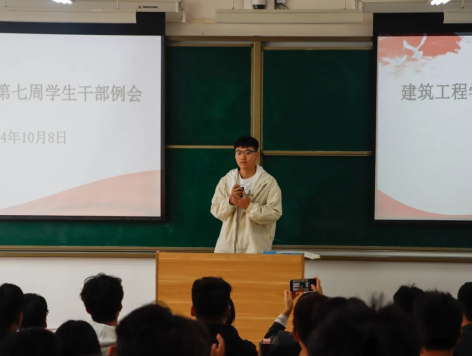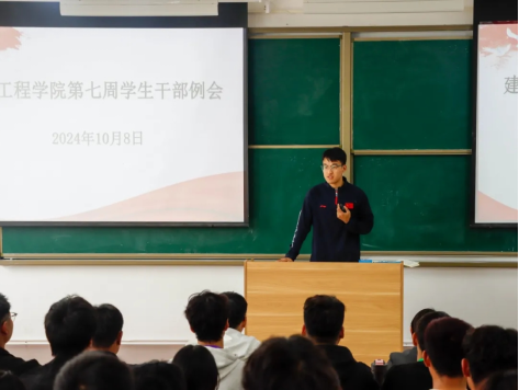 会上,张虎强调,在10月份要高度重视学院全体学生的素质培养,为学生的成长与发展筑牢坚实根基。他建议学生应自主提升自身知识能力、专业水平和工作水平,以从容应对未来的挑战与机遇。同时,他鼓励大家以部门建设为支点,以饱满的热情和务实的态度积极投身于部门建设,齐心协力为学院的发展贡献力量。