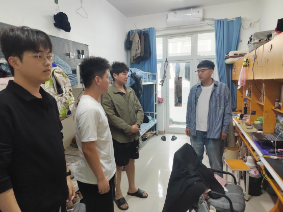 班会结束后,辅导员们深入学生宿舍,了解同学们的生活状况。在宿舍里,他们与学生亲切交流,关心大家假期归来后的感受,询问是否存在生活上的困难。辅导员们还仔细检查了宿舍卫生和用电安全情况,倡导同学们养成良好的生活习惯,保持宿舍整洁卫生,注意用电规范,共同营造安全舒适的宿舍环境。