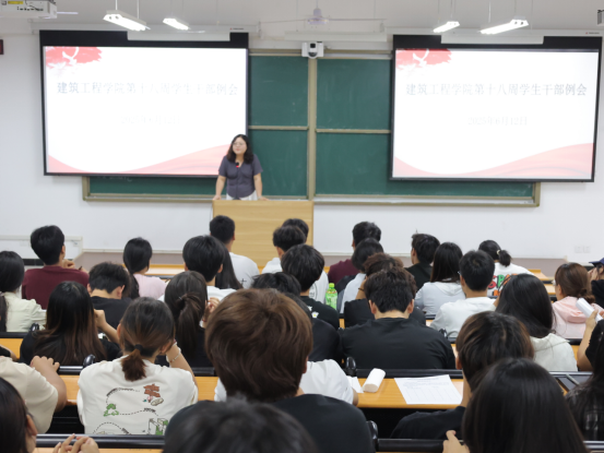 会议伊始,各部门部长依次对本学期工作进行全面总结,回顾了各部门围绕学院中心工作积极开展的各类活动,以及在日常管理中充分履职、营造学院良好氛围的具体举措。随后,史真对本学期学生工作进行整体总结,她高度肯定各部门取得的佳绩,史真进一步提出以下要求:一是立足学院专业特色制定科学细致的工作计划;二是建立规范的工作反馈机制,及时总结汇报工作成果;三是强化责任担当,以饱满热情打造纪律严明、充满活力的学生干部队伍。