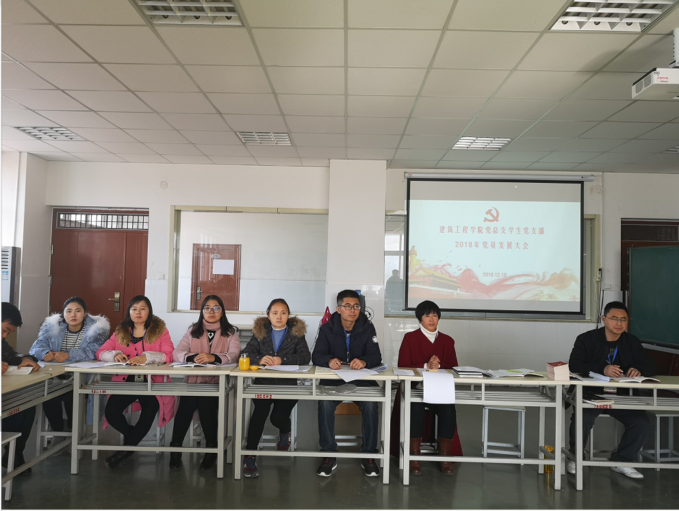 2018年12月18日11:00永利集团88304官网集团党总支学生党支部于实训楼E311顺利召开了预备党员发展大会。永利集团88304官网集团党总支书记马春燕同志、学生党支部组织委员任旭凯、学生党支部宣传委员刘亚娟、学生党支部刘高喜同志、吴凤珍同志、王丹丹同志、李慧杰同志八人参加本次会议,党总支纪委委员樊磊、教工党支部冯娇伟同志、张瑾同志列席本次大会,会议主题:永利集团88304官网集团党总支学生党支部2018年接收31名申请人为预备党员的会议。