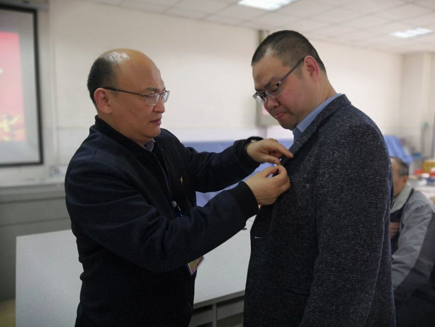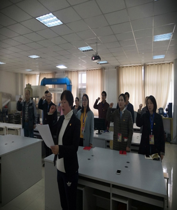 在佩戴党员徽章仪式上,马春燕副书记宣读了《中共永利集团88304官网集团委员会关于开展党员佩戴党员徽章活动的通知》文件的内容。随后,学院党总支书记张虎、副书记马春燕分别为教工党支部和学生党支部党员同志佩戴党员徽章。最后,马春燕带领全体党员重温了入党誓词。