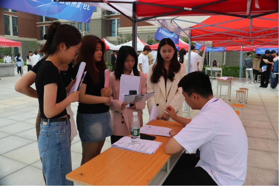 双选会现场气氛热烈,应聘学生精神饱满,自信大方,手持精心准备的简历材料,认真浏览招聘信息,积极主动地向心仪用人单位自我推荐。用人单位的招聘人员热情地向学生推荐就业岗位并耐心答疑解惑。当天下午,用人单位在学校提供的教室对应聘学生进行现场面试,大大提高了双选招聘效率。
