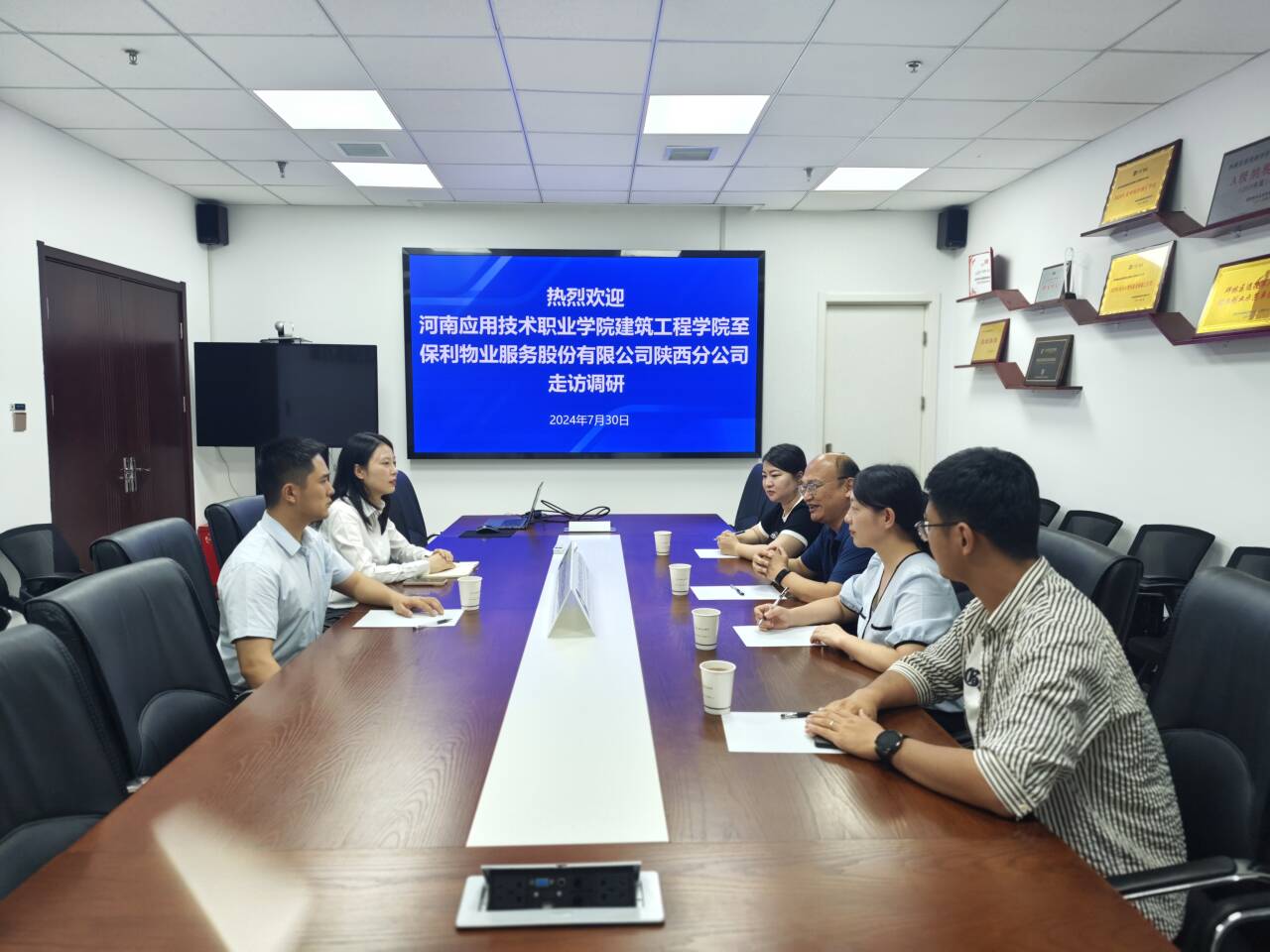 为进一步贯彻落实高校毕业生就业工作决策部署,开拓更多就业岗位,服务学生高质量就业,打通用人单位和毕业生之间的信息壁垒,全力拓宽学生就业渠道,2024年7月30日,永利集团88304官网集团党总支书记张虎、党总支副书记刘亚娟、团总支书记王莹及专职辅导员罗斐、宋雅雯一行至保利物业服务有限公司陕西分公司开展走访调研。