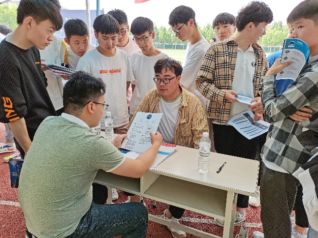 动员大会结束后,招聘会正式开始,本着为全心全意为学生服务的原则,学院精心挑选了河南省第二建设集团有限公司、中天建设河南第九分公司等20家条件好、发展优的企业,其中招聘造价员,资料员,施工员,监理员等800多个岗位,与我院培养专业很契合。