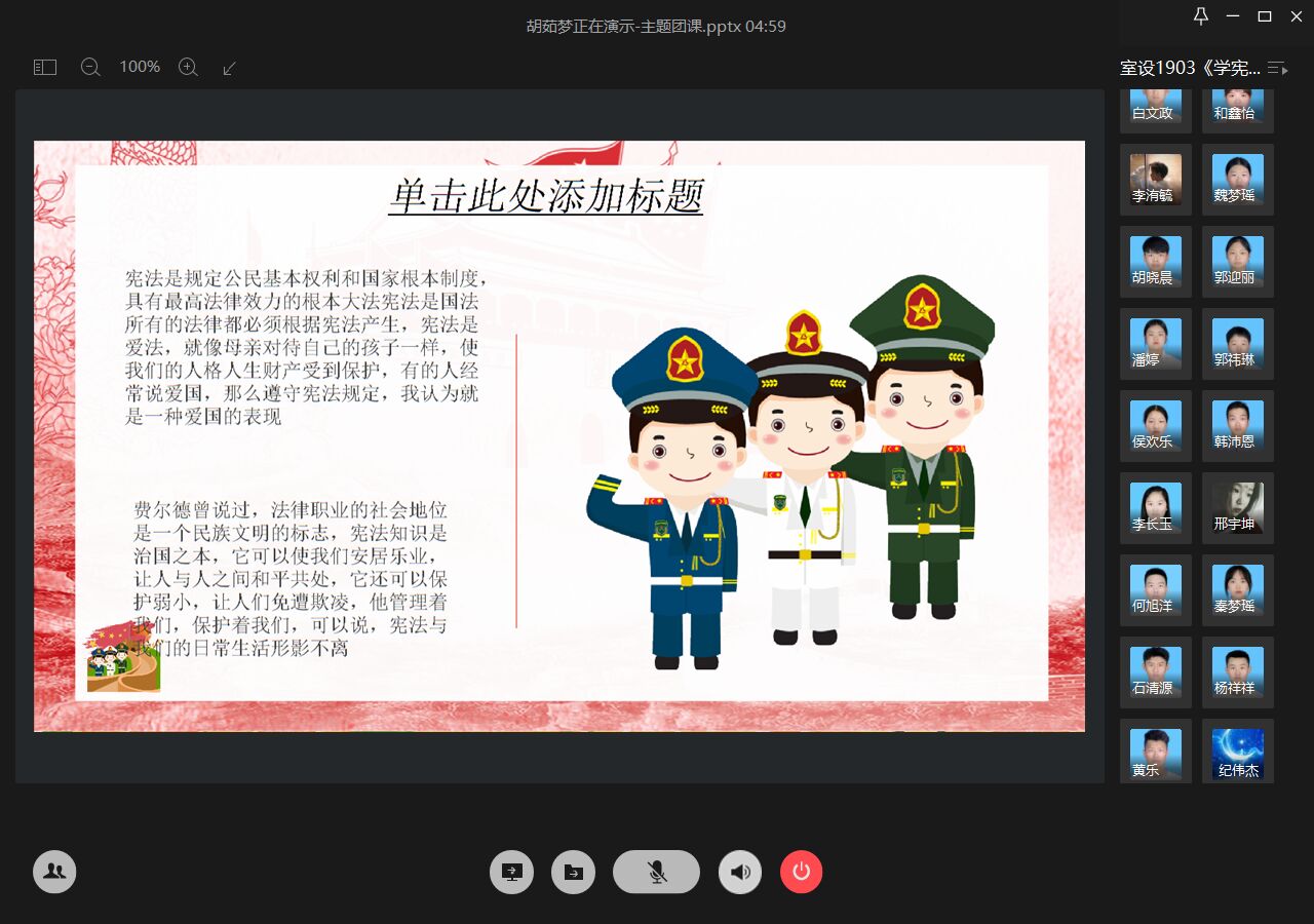 各团支部利用线上网络视频会议,线上集体讨论等学习方式,引导广大青年深入学习宪法的相关知识,并在结束团课的学习后开展宪法学习活动,注册普法网并进行学习宪法的相关知识,作为一名大学生,我们首先要掌握与自己生活密切相关的一些最基本的法律常识。