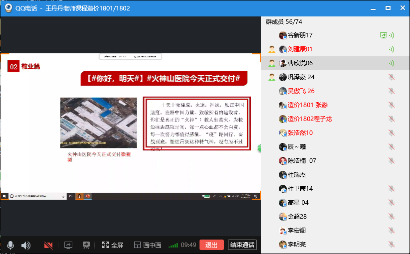 通过两次主题班会的召开,让同学们在抗击疫情的同时,保持健康、乐观的心态,“宅”在家里忙着“充电”,等待春暖花开时节,精神饱满地投入到新学期火热的学习工作中去。在实践中认识国情、了解社会,以实实在在的行动投身到伟大的实践中,以真才实学服务人民,以创新创造贡献国家。