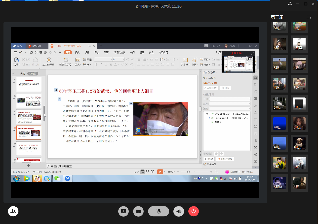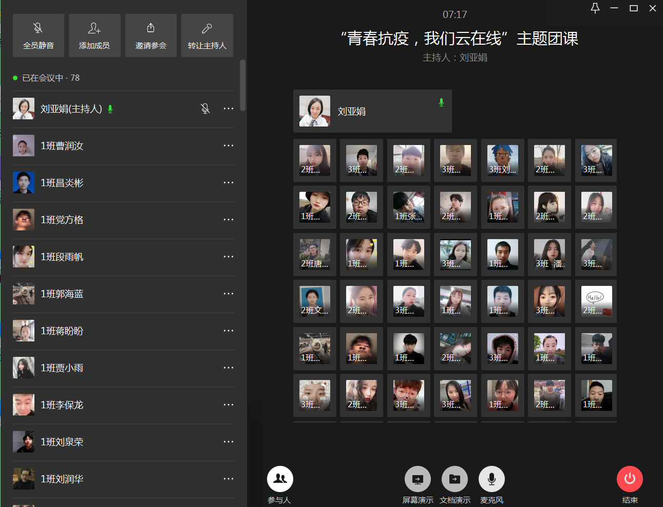 永利集团88304官网集团20位辅导员通过网络方式每周带领学生开展《青春战“疫”,我们云在线》主题团课,团总支共有42个团支部1480名学生参加团课学习和讨论,同学们在主题团课中有所学、有所悟、有担当、有作为,学习、体会、感悟青年担当与青春力量。