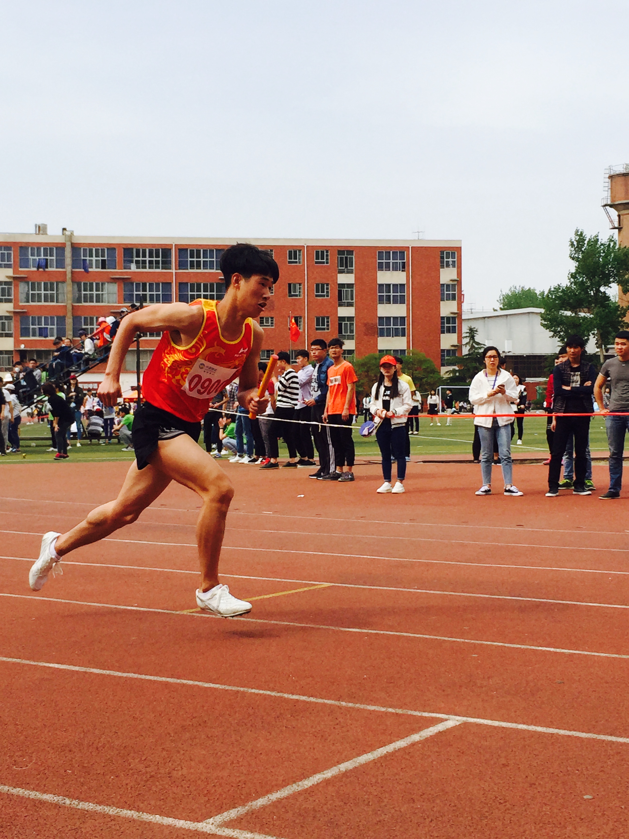 4*100的完美接力,他全速前进,由于体力透支,差点被超越,他没有轻言放弃,因为他是多少人的希望啊!咬紧牙关,冲向终点,当闯过胜利的红线时,翩若蝴蝶般跌倒在同学们的怀抱中。