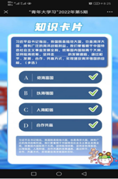 2022年3月21日—3月27日永利集团88304官网集团团总支组织2020级、2021级学生进行网上主题团课学习,并完成2022年第5期青年大学习网上答题活动。