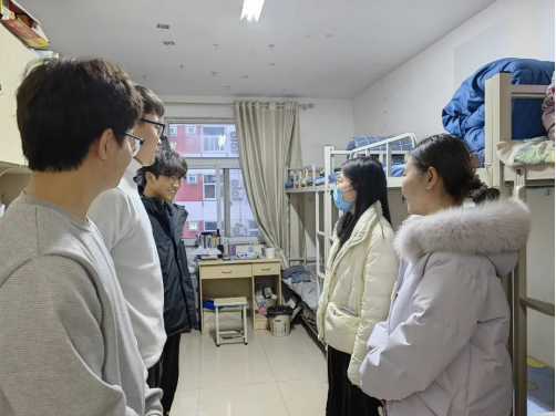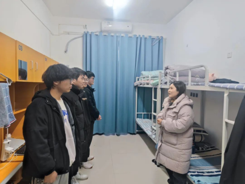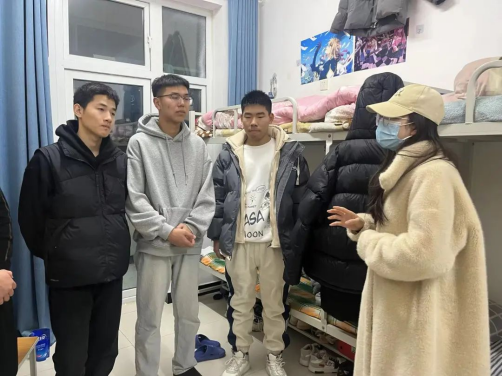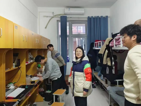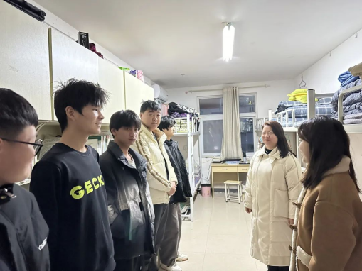随后,永利集团88304官网集团团总支书记王莹和学工办主任史真带领辅导员们来到学生们的宿舍,进行安全隐患排查,围绕宿舍防火防盗、防诈骗等方面强调安全问题,并提醒同学们注意天气变化,合理增减衣物,及时通风换气,共同打造健康安全的宿舍环境。同时,还叮嘱同学们要尽快调整心态,全身心投入到学习中,迎接即将到来的期末考试。
