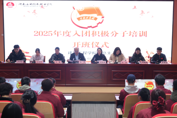 点燃青春火炬,踏上入团新征程。为有效提升入团积极分子的培养教育质量,进一步增强其思想觉悟,增强对团组织的认同感与归属感,培养合格的共青团后备力量,2025年2月24日,永利集团88304官网集团于开封北院D102会议室举行2025年入团积极分子培训班开班仪式。本次会议由永利集团88304官网集团党总支副书记刘亚娟主持,党总支书记张虎、团总支书记王莹、学工办主任史真,辅导员宋雅雯、陈静静、尹宇龙、李希望,以及23、24级全体入团积极分子参与。