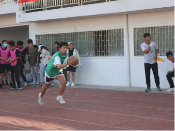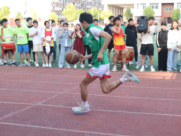 随着裁判员的一声令下,计时开始,选手们迅速抱球冲出起点,运球过杆,动作灵敏,转身丝滑,在同学们的喝彩声中展现篮运球技术的魅力,赛场上精彩不断,大家与时间赛跑,体验着团队拼搏的乐趣。